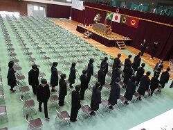 来賓の方々にも来ていただき、全校生徒で卒業生の門出を祝いたいという思いは強かったのですが、感染症予防の観点から、今できることを精一杯の思いで実施しました。ありがとうございました。
