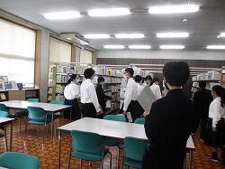 最初に訪問した都城市立図書館では、職員の方に説明を受けた後、自由に見学をさせていただきました。普段入ることができないバックヤード等も見学することができ、その蔵書の多さに驚いていたようです。