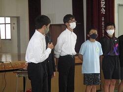 学期終わりの発表は、1年生は永濵結愛さん、2年生は友安航也さんが行いました。二人とも、この1年で成長したこと共に、改善しなければならないことを、しっかりとした口調で堂々と発表しました。