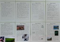 よく見てみると、中学3年の作品の横には作品とは別にコメントが貼ってありました。作品名の「輝ける未来へ」に関連付けて、自分の将来の夢やそのことに対する思いが綴られていました。将来への期待や不安など・・・思いは様々でした。夏休みという比較的ゆっくりとできる時にこれからの自分のことを考えたり、家の人と話してみたりするのもよいのでは・・・と感じたところでした。