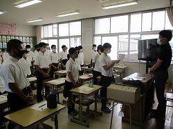 生徒たちはもちろん、本校教師も戦争体験はありません。教科書の中や映像の資料として「戦争」について触れてはきたのですが、このように、実際に語り部の方の実体験等によるお話を聞くと、「戦争」や「平和」についてより深く考えることができました。生徒たちは、藤田様のお父様の話、戦争の頃の普段の生活の話、子どもたちの生活など、一つ一つの話に熱心に耳を傾けていました。多くの質問に対しても、藤田様は真摯に答えていただき、生徒たちも感謝していました。最後に、3年の鵜島妃歩さんが生徒を代表してお礼の言葉を述べました。
