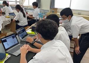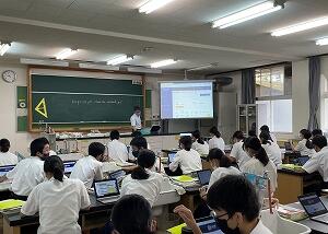 高校の先生と一緒に会議や研修を行うのは本校ならではの風景、楽しい雰囲気の中に真剣さも伝わる研修となりました。学校の中でもICTがあるのが当たり前になりつつある今、教職員も更なるスキルアップが望まれます。