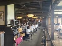 5月15日(水)、3年生修学旅行2日目、TGGで英語を使ってたくさんしゃべったり考えて楽しみながら学んだあとは、レストランで昼食をとりました。アクアシティ台場の眺めの良いレストランで、天丼、冷蕎麦、サラダ、冷奴、味噌汁という豪華なご飯。美味しくいただきました、食べたあとはテーブルごとに食器を重ね、きれいにととのえていました。