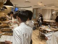 5月15日(水)、修学旅行中の3年生は、パナソニックセンター東京を後にして、夕食へと向かいました。赤坂のレストランでは、今回の旅行で唯一のビュッフェスタイルの食事となりました。レストランにはバスを降りて5分ほど歩くのですが、繁華街にあり、遅れず着いていくのにみんな一生懸命でした。レストランで着席し説明を受けた後、前畑さんの号令で「いただきます」。早速料理を取っていきます。野菜多めの人、炭水化物大好きな人、茶色いものが好きな人、いろいろですが、みんな楽しそうです。お腹いっぱい食べて、黒葛原さんの号令で「ごちそうさま」。美味しかったレストランを後に、ホテルへと向かいました。帰り道、雨模様でしたが、天気予報では明日はあがるとのこと。明日、天気になぁれ。