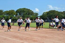 中学生は、「全員リレー」「中学生アトラクション」「団技」「選抜100M」や中学1年生から高校3年生までがバトンをつなぐ「団対抗リレー」に出場しました。生徒たちは日ごろの練習の成果を存分に発揮し、大いに盛り上がりました。