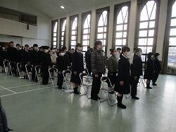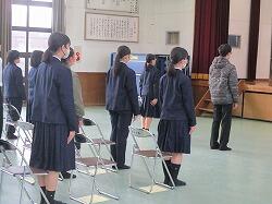 2月19日(金)、高等学校の推薦入学者選抜検査に伴う3日間の自宅学習が明け、学校には久しぶりに生徒たちのにぎやかな声、元気な姿が見られました。何の変哲もないそこに在る泉ヶ丘の日常に、心安らぐ気持ちになりました。3日間何していた、との質問に「課題のページを割り振って、午前中にそのページを終わらせて、昼からはテスト勉強を…。」「ちょっと朝寝坊してしまって、夜更かしにもなり、生活のリズムが…。」「PC(タブレット・スマホ・ゲーム機等もあり)の画面を眺めながら…。」とさまざまな声が。それぞれの声の「…。」の部分は想像してみてください。生徒と笑いながら会話ができる、日常。報道で見聞きする被災地の様子を考えると、いかにこの「日常」が貴重で大切なものかしみじみと感じます。この日、7時間目には2年生だけの立志式の練習が行われました。明日からの3連休明け13日(火)には、全学年そろってのリハーサル、翌14日(水)が立志式となります。春が近いです。