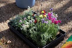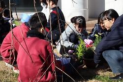 1年生、花の寄せ植えづくりに挑む
