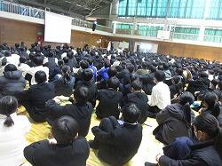 1月22日(木)7時間目に、附属中生全員と高校1・2年生が体育館に集合し、「15才のメッセンジャー」と題された講演会が行われました。講師としておいでくださったのは、浜崎満治様です。浜崎様は、2019年10月、当時高校1年生だった娘さんを交通事故で突然亡くされるという悲しい体験をされました。当時の思い、家族の思い、加害者への思い、支えてくれたことなど、切々とお話しくださいました。音楽を交え、思い出を振り返りながら…。浜崎様は、娘さんを軸として様々な声をいろいろな場所で発信されていらっしゃいます。言葉は毛布にもナイフにもなる、という言葉が心に刻まれました。また、命がかけがえのないものだと心に響きました。今、宮崎県では、ほとんどの自転車通学の中学生はヘルメット着用をしています。しかし、高校生になるとあまり着用が見られなくなり、大人もその多くがヘルメット着用していません。体験を通して、自転車乗車時のヘルメット着用がいかに大切か、命を守ることにつながるか、切々と話してくださいました。中学3年生は、もうすぐ高校生となります。ヘルメット着用を、これからも継続し、安心・安全な学校生活を送ってほしいと思います。浜崎様、心に届くお話、本当にありがとうございました。