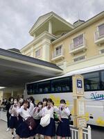 校長先生をはじめとした管理職の先生方が見送ってくださる中、バスに乗り込んだ1年生は、一路宮崎市へ。午前中は宮崎県庁を訪問しました。最初に防災庁舎の災害対策本部になる広い会議室で防災を中心としたお話を伺いました。動画等交えた分かりやすいお話で、防災意識を高めると共に、安心安全な宮崎県であると感じることができました。続いて建って91年目の本館・そして曳家工法で移築した98年目の5号館を見学し、宮崎県にとって歴史と伝統の詰まった誇りとなる県庁だと改めて感じました。最後に生徒を代表してお礼の言葉を後藤稟子さんが述べました。担当してくださいました津曲様をはじめとした宮崎県庁の方々に心からお礼申し上げます。ありがとうございました。