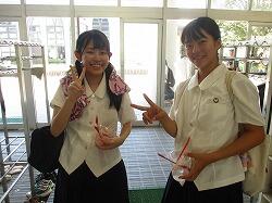 速度を遅くし、予想よりもずいぶん九州に近づいてきた台風のため、泉ヶ丘では日程の変更等が行われています。また、8月27日(火)は、朝は晴れていたけれど、途中から雨と日差しが混じる台風接近を感じさせる天気となりました。この日、附属中では朝から中学体育が行われ、主に中学生アトラクションであるダンスの練習を一生懸命行いました。振り付けを覚えつつ、フォーメーションの指示も出て、ダンスの全体像が把握できるようになりつつあります。ダンス実行委員を中心に3年生がよく頑張っています。午前中後半は文化の部の準備です。3年生が合唱の練習をするというので音楽室にあがってみると「JAI HO!」(ジャイホー)という難曲に挑み、少しずつ成長の階段を上っていました。職員室前に来ると、2年生数名がパソコンを覗き込みながら合議したり笑ったりしています。どうやらCM作りの一端を垣間見たようです。総合教室前を通ると、今度は1年生が数名、白い布を前に集中して頑張っています。学級旗つくりにいそしんでいました。技術室や教室では合唱や展示物つくりをそれぞれ行っていました。再度音楽室に上がると、今度は2年生が合唱の練習をしていました。1年生のころからずいぶん成長して男女とも大人の声に近づいてきています。仕上がりが楽しみです。午後は、文化の部の準備団活動が行われていました。雨模様だったため、雨天計画で、団ごとに時間や場所を変えて、高校3年生のリーダーたちを中心に、アトラクションや応援の準備・練習をしていました。台風接近により、準備に多くの時間が割けない状況も生まれてきています。それも見越して、みんな頑張っていました。