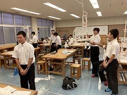 体験後に「感じたこと」「わかったこと」「自分たちにできるこ」をグループごとにまとめ、発表しました。「日常生活で行っていることが難しく感じた」「相手のペースにあわせることが大切」など、10月に高齢者施設を訪問する際にも大切なことに気づくことができました。最後に生徒を代表して吉村颯馬さんがお礼の言葉を述べました。この講座では、多くの道具を運んでいただき、準備もとても大変です。この講座に関わっていただいた全ての方々に感謝申し上げます。ありがとうございました。