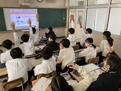 11月8日(金)午後の時間は、3年生総合的な学習の時間「デザイン思考で考える富士通SDGsプログラム」オンライン授業の本番に臨みました。場所は、定時制の3教室をお借りして実施しました。10月末からこの授業に向けて着々と準備してきた3年生。「サービス(小売り)」「共生(情報)」「まち(交通)」の三つのソリューションテーマに分かれ、富士通からのミッション「『スーパーの店長』が『お客様に喜ばれ、いつまでも愛されるお店づくりをする』(サービス)」「『駅員』が『あらゆる乗客が安心してりようできるようにする』(共生)」「『交通が不便なまちに住む人』が『行きたい場所に移動する』(まち)」に対するアイデアを提案していきます。このアイデアを練り上げるのに、班会議、合同会議で合意形成を重ね、模擬発表を経てこの日を迎えました。サービス班の本校のソリューションアイデアは、「食品ロス、作業の負担軽減~賞味期限間近割引のポップを置き客自身が確認し自己申告」。発表者は黒木澪さん中村桜之介さん。共生班の提案は「アプリ・駅内タブレットの実現~アプリで遅延・空き状況・駅員呼び出しなどさまざまな機能を付帯、貸出・無断持ち出し防止・置き場所等考えて提案」。発表者は上村陽希さん種子田壮志さん。まち班の提案は「ブルーマウンテンスカイライン~ロープウエイとドローンを使った乗り物開発、使い方も工夫」。発表者は瀬口佳蓮さん中田希來さん堀真広さん。中にはそのまま使えそうなポップを作って提示したり、分かりやすい絵を描いて解説したりと工夫にあふれた発表でした。どの班も富士通の方からお褒めの言葉をいただきました。また、本校に先立って発表した、兵庫県の中学校と福岡県の中学校も、アイデアにあふれたすばらしい発表で、オンラインで一緒に学ぶことができ本当に感謝します。最後に、「サービス」班では中原唯正さんが、「共生」班では黒葛原漣さんが、「まち」班では三重野泰雅さんが感想を述べました。3年生は今回の貴重な学びを、次の活動に活かし繋げていきます。次は本校のある「都城の『だったらいいな!』」を再び各班で考え、12月に予定されている市役所市議会訪問にもっていく予定です。実りある授業の時間を提供くださいました富士通株式会社の皆様、企画運営くださいましたキャリアリンクの皆様、本当にありがとうございました。また、教室を快く使わせていただきました定時制の皆様にも御礼申し上げます。