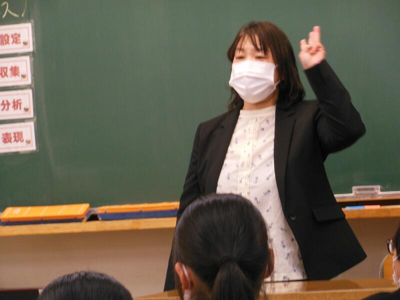 9月27日(金)5時間目英語支援訪問授業が行われました。授業学級は1年A組。単元は「現在進行形」です。この時間は、それまでに学んできた現在進行形を使ってプレゼンテーションで発表していく学習。ペアから始まり、グループ、全体とさまざまな形態を取りながら、「身近な人の今」を現在進行形で表現していきます。普段から声をしっかり出し、学習した内容を使って表現しよう、と意欲的に取り組んでいることが窺える授業となりました。1年生は本格的に英語学習に取り組みだしてまだ多くの時間は経過していないのですが、コミュニケーション力の高さに驚かされます。この日も、附属中・高校の先生方が多く参観されていました。
