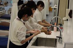 訪問させていただいた病院は「宮崎市郡医師会病院」です。最初にホールでお話を聞きました。映像資料や動画も豊富で、宮崎市郡医師会病院が、地域の病院の要となって医療を行う拠点病院であることがよく分かりました。その後、出会ったのが「ホスピー」という自律搬送ロボットです。病院で必要なものを届けてくれ、エレベーターも自分で乗りこなします。外見も可愛らしく、みんな楽しそうに対面していました。その後、救急車両を見学し、実際に乗り込んでそのすばらしさを体感したり、手をきれいに洗う方法や、医療用の服装に着替える際の衛生面・安全面に配慮した着替え方などを学んだりしました。最後に、生徒を代表して坂元希成さんがお礼の言葉を述べました。