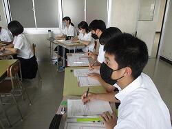 2年生では6月25日に行う学校説明会で使う資料の準備をしていました。