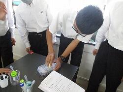 5月18日(水)5・6時間目に、2年生は自然科学探究分野の出前授業に臨みました。題して「DNAを観る」。講師としてお越しいただいたのは、南九州大学環境園芸学部の菅野善明先生です。DNAー理科の学習以外でも、時折ニュースなどで耳にする言葉です。そのDNAの入り口を学び、実験を通して「観よう」と挑戦した2時間。生徒たちは生き生きととても楽しそうに学びを深めていました。タマネギのDNAの抽出は、自分たちで必要な実験道具を取りに行き、タマネギをすりおろし、洗剤や塩を加え、ろ過し……と、みんなで協力して実験を進めていました。今回は、大学生の皆さんも参加してくださり、実験の補助をしていただきました。こうして得た知識や経験は、生徒たちにとって大きな財産となって蓄積されていきます。最後に生徒を代表して宮原瑛太さんがお礼の言葉を述べました。お忙しい中、授業をしていただきました菅野先生、補助をしていただきました大学生の皆さん、そして派遣くださいました南九州大学に深くお礼申し上げます。ありがとうございました。