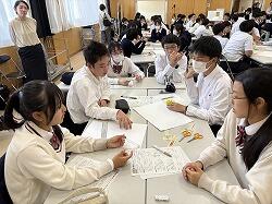 11月12日(水)6・7時間目の時間、3年生は総合的な学習の時間・キャリア探究分野で、前日11日(火)に引き続き「デザイン思考で『都城』について考える」をテーマに、みんなで出したよい点・改善点からまとめた六つの課題について、六つの班に分かれて話し合いを行いました。話し合いは、まずデザイン思考で、当該者の立場に立って「聞いていること」「見ているもの」「していること」「言っていること」「考えていること・感じていること」を検討し、それから考えるソリューションアイデア「だったらいいな!」を導き出していきます。どの班も、真剣に調べ、意見交換をし、まとめ、考えていました。各班のソリューションアイデア、どんなふうにまとまったか楽しみです。14日(金)学活の時間に、それぞれの班のソリューションアイデアを発表してもらう予定です。発表後、各班がまとめたシートを市役所にお届けします。それが12月10日(水)の市役所・市議会訪問へとつながっていきます。