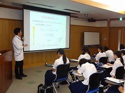 午後は、宮崎大学医学部を訪問しました。宮崎大学の有村先生が「健康・医療情報の捉え方」について講義をしてくださいました。現場の医師の話を聞くことで、将来医療関係の仕事に就きたいと考えている生徒にとって学ぶことの多い講義だったのではないでしょうか。その後、ドクターヘリとドクターカーについての説明をしていただき、実際にドクターヘリとドクターカーを見学しました。