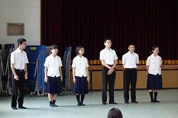 本校では,2年生が一人一人ステージに上がって“決意表明”をします。厳粛な雰囲気の中での決意表明になるため,みんな緊張した面もちでしたが,慌てることなく堂々とした態度で臨んでいました。