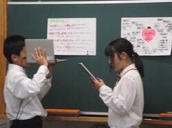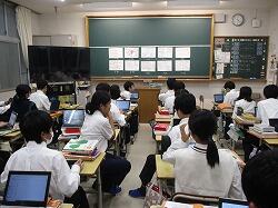 11月8日(金)午後の時間は、3年生総合的な学習の時間「デザイン思考で考える富士通SDGsプログラム」オンライン授業の本番に臨みました。場所は、定時制の3教室をお借りして実施しました。10月末からこの授業に向けて着々と準備してきた3年生。「サービス(小売り)」「共生(情報)」「まち(交通)」の三つのソリューションテーマに分かれ、富士通からのミッション「『スーパーの店長』が『お客様に喜ばれ、いつまでも愛されるお店づくりをする』(サービス)」「『駅員』が『あらゆる乗客が安心してりようできるようにする』(共生)」「『交通が不便なまちに住む人』が『行きたい場所に移動する』(まち)」に対するアイデアを提案していきます。このアイデアを練り上げるのに、班会議、合同会議で合意形成を重ね、模擬発表を経てこの日を迎えました。サービス班の本校のソリューションアイデアは、「食品ロス、作業の負担軽減~賞味期限間近割引のポップを置き客自身が確認し自己申告」。発表者は黒木澪さん中村桜之介さん。共生班の提案は「アプリ・駅内タブレットの実現~アプリで遅延・空き状況・駅員呼び出しなどさまざまな機能を付帯、貸出・無断持ち出し防止・置き場所等考えて提案」。発表者は上村陽希さん種子田壮志さん。まち班の提案は「ブルーマウンテンスカイライン~ロープウエイとドローンを使った乗り物開発、使い方も工夫」。発表者は瀬口佳蓮さん中田希來さん堀真広さん。中にはそのまま使えそうなポップを作って提示したり、分かりやすい絵を描いて解説したりと工夫にあふれた発表でした。どの班も富士通の方からお褒めの言葉をいただきました。また、本校に先立って発表した、兵庫県の中学校と福岡県の中学校も、アイデアにあふれたすばらしい発表で、オンラインで一緒に学ぶことができ本当に感謝します。最後に、「サービス」班では中原唯正さんが、「共生」班では黒葛原漣さんが、「まち」班では三重野泰雅さんが感想を述べました。3年生は今回の貴重な学びを、次の活動に活かし繋げていきます。次は本校のある「都城の『だったらいいな!』」を再び各班で考え、12月に予定されている市役所市議会訪問にもっていく予定です。実りある授業の時間を提供くださいました富士通株式会社の皆様、企画運営くださいましたキャリアリンクの皆様、本当にありがとうございました。また、教室を快く使わせていただきました定時制の皆様にも御礼申し上げます。