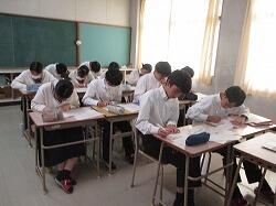 11月26日(火)、他学年に先んじて、3年生は今日から2学期期末テストに入りました。本日は1時間目に英語のテストが行われました。教室を覗いてみると、テスト直前にはみんな廊下や教室のあちらこちらで、最後の確認に余念がない様子。チャイム前には着席し、チャイムと同時に真剣な様子でテストに集中していました。1・2年生は明日27日(水)よりテストスタートとなります。高校生は月曜からテストに入っていますので、もう二日目。泉ヶ丘全体が、みんな同じ方にベクトルを向け、一生懸命頑張っています。