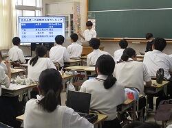 10月30日(水)午後2年生総合的な学習の時間「キャリアチャレンジデイ2024」で学習しました。このキャリアチャレンジデイは、株式会社キャリアリンクが企画・運営している事業で、東日本大震災発生当時、職場体験学習ができなくなった被災地の中学2年生を対象に始まったオンラインでのキャリア学習です。この先進的なキャリア学習は、その後全国に規模を広げ、その優れた取組に対して2021年度には「キャリア教育アワード経済産業大臣賞(最優秀賞)」を受賞しています。具体的には、関東や関西に本拠地を置く大企業を中心とした講師の方からオンラインでお話を聴き、質問をして双方向にやりとりをします。それも全国で3校同時に同じ授業を受けます。今回、本校2年生には、福岡と愛知の中学校と共に、「ネットワンシステムズ株式会社」(会場①)、「シチズンマシナリー株式会社」(会場②)、「野村ホールディングス株式会社」(会場③)、「阪急阪神ホールディングス株式会社」(会場④)の4企業がお話くださることになり、生徒それぞれは、そのうち二つの企業のお話をお聴きすることができました。講師を務めてくださるのは若手からベテランの方まで幅広く、各企業の取組や、ご自身の進路・職業選択のこと、仕事を通して学んだことや考えたことなど、分かりやすく話してくださいました。この授業では、事前に考えた講師への質問を、各班代表がオンラインで発表する時間が設けられています。会場①では田中史恩さん原田竣乃介さん隅夏波さん山下亜樹さん、会場②では長倉史拓さん平峯楓士さん瓦田佳子さん後藤稟子さん、会場③では仲井柊一さん吉岡果胡さん川﨑隆生さん北郷尚大さん、会場④では川内芽衣子さん前迫奏亜さん大西琉生さん萬壽瑛那さんと、それぞれ講師のお話の後に設けられた打合せの時間で話し合い、前もって考えていた質問に修正を加えながらしっかりと質問していました。職場体験学習では身近にある地元の企業について実際体験して学び、今回は地方にいるとなかなか触れることのない大企業のさまざまな仕事について学ぶことができました。これらの経験は、これからの自分自身の進路選択や生き方に活かせる貴重なもの。事後授業でのふりかえりもしっかりとし、活かしていきましょう。4つの企業及び講師の方々、そしてお世話くださいました株式会社キャリアリンクの方々に心からお礼申し上げます。また、本校のオンライン授業会場として教室を貸していただきました定時制の皆様にも感謝申し上げます。ありがとうございました。