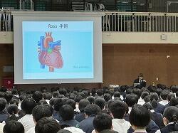 11月15日(金)5・6時間目に、中高生が一堂に会し、「SSH講演会」がありました。講師としておいでいただいたのは、宮崎県出身で、公益財団法人榊原記念財団附属榊原記念病院(東京都府中市)小児心臓血管外科・特任副委員長高橋幸宏先生です。小さな子どもの心臓の手術を数多く手がけられてきた高橋先生のもとを、多くの子どもたち、それも乳幼児や新生児が救いの手を求めて来ます。時間とのたたかいになることもしばしば。子ども、親御さん、手術チーム、仲間、そして執刀医……そこに大切な言葉として「緩和」があると話していただきました。先生のお話の中で、この「緩和」という言葉は何度も登場しました。みんなのなかにコミュニケーションや繋がりができて一つになってこそ一つの手術が行われ、命に向き合っていける、そう言ったお話は心に響きました。お話の途中で、高橋先生と患者家族の方々との交流や手術の様子のドキュメンタリーが流され、大変心打たれるものがありました。最後に質問コーナーがあり、附属中出身の高校の先輩方からも質問が積極的になされました。質問の返答として、話しの流れの中で「今、しっかり勉強をすることが大切」という言葉もいただきました。SSH講演会として、このような時間を中高生一緒に過ごせたことはとてもすばらしいことです。高橋先生、お忙しい中、有意義なお話をありがとうございました。