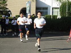 秋晴れとも冬晴れとも言えそうな今年の11月の青空。そんな爽やかな好天の下、11月22日(金)7時間目に、校内持久走記録会が行われました。保健体育の授業の仕上げの時間で、1年・2年・3年の全学年が揃っての記録会です。雨天の場合は中止の予定でしたので、密かに願っていた人もいたかもしれませんが、週間天気予報ではずっと好天といっていましたので、みんな覚悟を決めて、「これまでのベストタイムを狙う!」という意気込みで女子2,000メートル男子3,000メートルのタイムトライアルに挑みました。集合・挨拶をして、心拍数を計り、準備運動を十分して、最初に女子、続いて男子が走りました。どの生徒も真剣に走り、汗を流し、息を整え、腕を振って、前へ前へと歩を進めます。途中で脇腹が痛くなって押さえながらも、頑張って走っている生徒もいました。女子が走るときは男子が、男子が走るときは女子が、速く走り終えた生徒は後続の生徒を、それぞれ精一杯応援している姿も見られ、心が温かくなりました。50分の1時間の授業内で、全員が走り終え、よく頑張った記録会でした。また、平日のお忙しい時間にもかかわらず、多くのの保護者の方が応援に駆けつけてくださいました。熱い応援、ありがとうございました。
