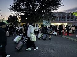 高校2年生が修学旅行に出発しました。まず、12月5日(木)海外修学旅行に行く生徒たちが出発。行く先は本年度はオーストラリア・シドニーで、中心となるのはホームステイです。いっぽう、国内修学旅行は、12月6日(金)に出発。本年度は東京近辺まで一緒に行き、その後スキー体験に群馬に行くコースと、東北を訪ねるコースに分かれ、再び東京近辺に集まり、研修やテーマパーク体験をして帰ってくる旅程となっています。附属中生も、数年したら高校での修学旅行が待っています。先輩方が何を学び、何を楽しみ、どんな表情で帰ってくるか楽しみです。海外組の出発も、国内組の出発も、多くの保護者の方が朝早くから生徒の送り届け・見送りに来てくださいました。特に国内組は朝6時頃のまだ暗いうちからで大変だったと思います。また、たくさんの先生方が5時頃から駐車場整理等で動いていました。生徒主体の修学旅行ですが、陰で支える多くの人たちがいることを知るよい機会となっています。高校2年生、充実した旅行を!