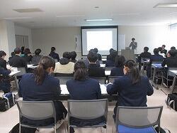 その日の放課後、高橋先生のご厚意で、希望者による高橋先生を囲んだ座談会も行われました。附属中からも、3年生石橋彩花さん竹本怜結心さん築地莉音さんの3人が参加させていただきました。全体で20名を越える参加者があり、生徒たちは高橋先生にさまざまな質問をしていました。医療系に進学したい生徒から、どのように子どもと接すればいいか、という質問が出たり、また、高校生活や大学生活はどのように過ごせばよいか、と進路・進学に関する質問が出たり、とみんな前向きで、居心地のいい空間がそこにありました。貴重な時間を割いてくださった、高橋先生に重ねて御礼申し上げます。