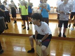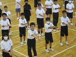 8月26日(月)2・3時間目に、中学体育が行われ、最初にグラウンドでリレーの入退場や待機位置・退場位置の確認をしました。1年生~3年生まで全員で繋ぐリレー、本年度はどのような展開になるのでしょうか。リレーの準備を手早く済ませ、2時間目の途中から体育館に入り中学生アトラクションの練習を行いました。この日は2曲目の振り付けを覚える、ということで、ダンス実行委員のステージでの説明に合わせて3年生が1・2年生の間に入り指導しながら進めていました。残り時間はあまりありません。短時間で覚えてよりよいダンスができるよう頑張りましょう!