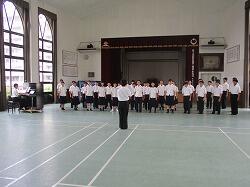 午後の部の最初が中学生合唱です。12時25分には中学生は待機。1年生がトップバッターですので、板付て開始を待ちました。合唱は次の通りの順番で行われました。