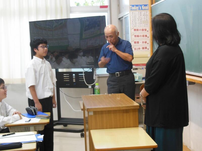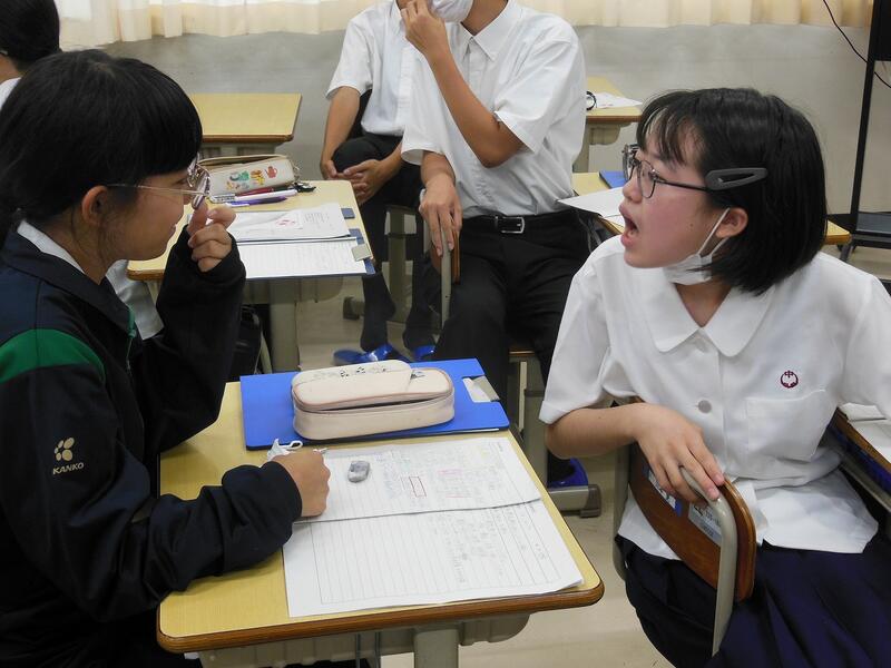 9月27日(金)5時間目に英語の支援訪問授業が行われました。授業学級は1年A組。単元は「現在進行形」です。この時間は、それまでに学んできた現在進行形を使ってプレゼンテーションで発表していく学習。ペアから始まり、グループ、全体とさまざまな形態を取りながら、「身近な人の今」を現在進行形で表現していきます。普段から声をしっかり出し、学習した内容を使って表現しよう、と意欲的に取り組んでいることが窺える授業となりました。1年生は本格的に英語学習に取り組みだしてまだ多くの時間は経過していないのですが、コミュニケーション力の高さに驚かされます。この日も、附属中・高校の先生方が多く参観されていました。