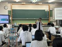 10月15日(火)3時間目に、1年A組で数学の支援訪問授業が行われました。単元は「一次関数」。将来、理数科に進学する生徒ですので、数学が好きな生徒がたくさんいます。この授業では、「電気自動車とガソリン車の総費用」について、与えられた情報を読み取り、総費用が等しくなる年数を求めていきました。個人で考え、ペアやグループで意見を交換し、それぞれが考えた方法で答えを導きだします。自分の考えを前に出てしっかりとした発表をしてくれた人もいます。発表者はとても分かりやすくみんなに伝えていました。この授業を通して「一次関数」の基礎的な知識を身に付け、グラフなどに表すことはもちろん、生活の中で一次関数が活きていることも理解できたのではないでしょうか。数学の支援訪問授業は、11月にもう一度行われる予定です。