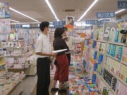 10月10日(木)、この日中間テスト最終日。3時間目で中高全クラスのテストが終了すると、生徒たちは一斉にやり遂げた晴れやかな顔に!その後、専心(清掃)・帰りの会を済ませた1年~3年の図書委員は、かねてから計画していた図書委員による選書購入のため、近くの書店にみんなで出かけました。この日は、司書の相良先生も同行してくださいました。選書購入に当たっては、前もって附属中生にアンケートをとり、その一覧表をもっての選書となりました。書店について小一時間、本を見て、相良先生に相談して、書店の方に尋ねて、それぞれが一生懸命選書に当たりました。昨今、世の中では本の購入はネットでの注文が多くなり、書店に足を運ぶ機会が減っている現状があります。しかし、幸いにも本校は大きな書店が近くにあり、実際に本に触れながら選ぶことができます。本日購入予定にした本は、近日中に本校に届けられます。自分の希望した本が購入されているかもしれません。楽しみにしてください。