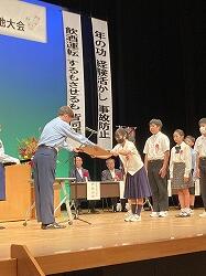 10月12日(土)午後、都城市ウエルネス交流プラザにて「令和6年度 安全・安心みやこんじょ盆地大会」が開かれ、本校2年生の3人が表彰されました。これは夏休みに書いて応募した「令和6年度交通・地域安全作文」の「交通安全の部」で井上結月さんが最優秀賞、平峯楓士さんが優秀賞を、「地域安全の部」で黒木颯斗さんが優秀賞を受賞しての表彰でした。おめでとうございます。大会の冒頭で、一般の部に続き小中学生の部が表彰され、緊張したようですが、堂々と表彰を受けました。交通安全や地域安全について体験したこと、考えたことを率直に述べた作文。地域に広まることで、安心・安全意識の向上の一助となったのではないでしょうか。