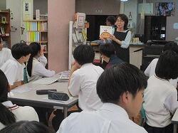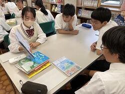 10月17日(木)6時間目、3年生の国語の時間に「絵本の読み聞かせ」について学び、練習しました。来週、「福祉交流体験学習」で保育園・こども園を訪問し学習させていただく予定の3年生。ちょうど技術・家庭科では手作り絵本をそれぞれが制作していて、全員それを持参することになっています。講師を務めてくださったのは司書の相良先生です。授業では、実際に絵本を読み聞かせしていただきながら、読み聞かせの際にどんなことに注意すればよいか、丁寧に分かりやすく説明してくださいました。その後、それぞれのグループで、自分の手作り絵本や図書館にある絵本を使って実際に読み聞かせを練習しました。最後に、全体の前で増田陽さんと平山笑里さんが読み聞かせを披露してくれました。総合的な学習のキャリア探究・福祉として実施する福祉交流体験学習ですが、その学習と、読書・音読・朗読の分野から国語が、保育の分野から家庭科が教科を横断して連携して取り組むことができました。3年生、それぞれなかなか上手に読み聞かせができていました。保育園児に喜んでもらえると嬉しいですね。