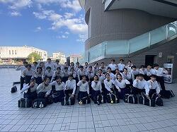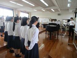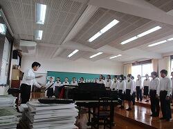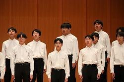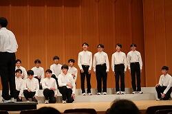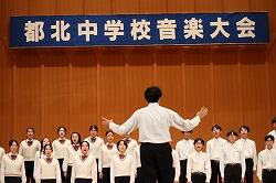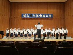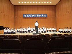 10月27日(月)この日は都北音楽大会の日。7:50。3年生の教室に行ってみると、「みんな、少しだけ朝練習したいところがあるのだけれど……。」と指揮者の原田竣乃介さんの声に、みんな並んで自然と合唱の練習が始まりました。ほんの少しの揺らぎも改善していこうとする姿を目の当たりにし、この日の午後の3年生の合唱を聞くのが、大変楽しみになりました。都泉祭で見事な合唱を披露し、令和7年度都北音楽大会に学校代表として出場する3年生は、午前中3時間の授業を終えて少し早めの昼食を摂り、生まれたゆとりの時間を音楽室での最終練習にあてました。朝と同様、細かな注意が飛びます。少しでもよくしよう、いい合唱をつくりあげよう、という気持ちがひしひしと伝わってきました。出発前、40人全員で円陣を組み、心を一つに。MJホールに移動し、着席。ありがたいことに舞台の正面が本校の座席となっていて、多くの学校の音楽を素晴らしい場所で聴くことができます。各学校の発表は、どの学校も一生懸命練習を重ねた発表で、少人数の学校や合同チームなどもあり、とても新鮮で心を打つ発表が続きました。本校の出場順は最後でした。少し緊張した面持ちで舞台に並んだ生徒たち。原田さんが代表して学校と歌のについて、ポイントを押さえ、かつ自然な雰囲気で上手に紹介して始まりました。最初に混声四部合唱の「校歌」。伴奏なしで柔らかで美しい響きが会場中を包みました。続いて都泉祭で披露した「湯かむり唄」。位置を変え、さらに細かなパートに分かれての合唱です。「ヤレヤレヤレヤレ……」と順番に4~5名ずつ起立して歌い広げていきます。リズム豊かな音の響き、音のはずみ。聴いていてぐんぐんと舞台の上から歌声に押されて引き込まれていく不思議な感じを受けます。途中、手拍子や足拍子も入り、会場中を巻き込んでフィニッシュ!会場は一瞬息をのんだような空気の後に、徐に拍手が沸き上がりました。見事な歌でした。都北音楽大会の締めにふさわしい合唱、といっても過言ではないでしょう。3年生、素晴らしい合唱の披露、ありがとうございました。最後に音楽担当の中園先生が、「すばらしかった!」と声をかけてくださり、生徒たちはみな嬉しそうに話を聞いていました。お忙しい中、聴きに来てくださった保護者の方もいらっしゃいました。本当にありがとうございました。