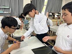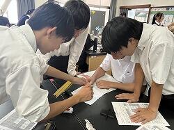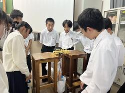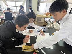 10月25日(土)午後、中学1・2年生のサイエンス部+3年生有志の6チーム、高校1年生2チームが京都府立洛北高等学校附属中学校主催の「パスタブリッジコンテスト」に参加し、文字どおり「パスタ」で「ブリッジ」を作ることに挑戦しました。具体的には20㎝の隙間に渡す軽くて丈夫な橋を、50本の既定のパスタで決められた時間内で作り上げていきます。そして、最大6㎏の重りを載せて耐えられるかで競います。2時間半かけて頑張った各チーム。残念ながら上位入賞はなりませんでしたが、アイディアを凝らしながら一生懸命挑む姿がそこにありました。こうやってチャレンジし学んでいく泉ヶ丘生です。