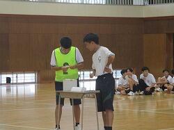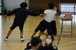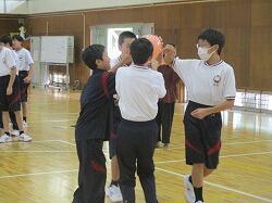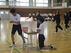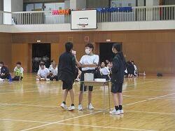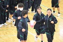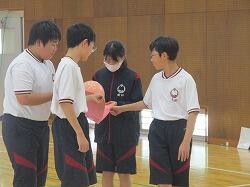 集会の後は、三学年交流会が行われました。12期執行部が中心となった最初の取り組みです。最初にクラスマッチです。クラスマッチ種目の一つ目は「風船運びリレー」。三学年対抗で、各学年四人組を作り、紙・下敷き・ファイルの三つから選んで、それに風船を載せてリレーしていきます。風船を直接触ってはいけません。みんなで慎重に、でも素早く運ばなければなりません。スタートして何度も風船を落としながらどの学年も頑張りました。結果、3年生が一番早くゴールしました。二つ目の種目は「借り者競争」。「借り物」ではなく「借り者」です。くじで引いたお題に示された内容に該当する人を探して連れていき、判定してもらってゴール、そして次にバトンタッチします。お題はいろいろ。「〇月生まれの人」「〇〇市に住んでいる人」「朝はご飯派の人」「〇〇清泉会の人」「英検〇級をもっている人」等。最初のうちは該当者が多くいるので難なく進んでいくのですが、後になればなるほど該当者が少なくなり、くじの引き直しになります。三学年ともとても楽しみながら競い合っていました。これもまた、先輩の強さでしょうか、3年生が勝利しました。交流会の最後は、ファミリーマッチ。ファミリー対抗で行う種目はドッヂボールです。ふたファミリーがひとチームとなり、5チームでの対抗戦です。 交流会は、時間が押して少しあわただしくなりましたが、和気あいあいと和やかなムードで進12期執行部の皆さん、ありがとうございました。