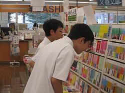 10月21日(火)、テスト初日の放課後、中学生図書委員みんなで近くの書店に出かけ、選書購入を行いました。テスト期間中ではありましたが、明日からは1・2年生が部活動が始まるため、初日の放課後1時間弱で実施しました。図書委員は前もって全校生徒にアンケートを取り、それをもとに選書していました。この日は、司書の相良先生も同行してくださり、生徒たちにアドバイスをしてくださっていました。ご協力いただいた書店に、お礼申し上げます。生徒の選書による図書がしばらくしたら入ってきます。生徒のみなさん、楽しみにしてください。
