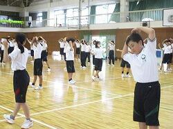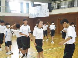 8月26日(月)2・3時間目に、中学体育が行われ、最初にグラウンドでリレーの入退場や待機位置・退場位置の確認をしました。1年生~3年生まで全員で繋ぐリレー、本年度はどのような展開になるのでしょうか。リレーの準備を手早く済ませ、2時間目の途中から体育館に入り中学生アトラクションの練習を行いました。この日は2曲目の振り付けを覚える、ということで、ダンス実行委員のステージでの説明に合わせて3年生が1・2年生の間に入り指導しながら進めていました。残り時間はあまりありません。短時間で覚えてよりよいダンスができるよう頑張りましょう!