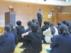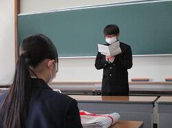 修了式や連絡・表紹介紹介を終えた後、生徒たちは各学級で最後の学活を行いました。この1年間、ひとりひとり多くのことに出会い、成長してきました。いよいよ1年生は2年生へ、2年生は最上級生である3年生へ。生徒指導の先生の言葉にありましたが、それぞれがよき手本となれるよう、この春休み自分を見つめ直し、新学期に向けて前進していきましょう。