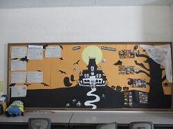 11月初めまで続いた、多くの行事や特別な授業の日々から閑話休題、今は間近に迫ってきた2学期期末テストに向けて、校内は勉強モードに入っていきつつあります。生徒棟の外壁工事真っ盛りで、ときに教室を移動して学習に臨むこともありますが、荷物を持って移動するのも少し慣れた様子です。久しぶりの「日常の風景」。今回は校内の掲示物を少し紹介します。学習清泉会が、2学期中間テスト前から掲示しているのですが、各教科の勉強法のアドバイスと、テストカウントダウンカレンダーが、全学年が通る階段の踊り場の壁や1年横の壁に掲示されています。アドバイスは先生からのものと、生徒が個人でアドバイスを付箋紙に書いて貼ってくれたものがあります。生徒からの直接アドバイスとはいいアイデアです。いろいろなアドバイスが書かれてあり、今回の期末テストにも利用できるのではないでしょうか。職員室そばの掲示板には、季節感あふれる英語の掲示物を二人のALTが掲示してくれています。もうすぐクリスマス仕様に変える、とのことで、あわてて現在のハロウィン仕様の掲示物の写真を撮りました。掲示物を見て楽しみながら英語に親しんでいくことができます。1階の下足室から階段にかけての掲示ボードには、3年生の美術の作品が貼られています。それぞれ個性あふれる素敵な作品が仕上がっています。