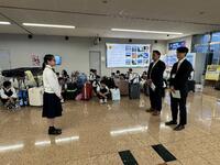 5月17日(金)、3年生修学旅行4日目最終日。飛行機は10分遅れながら順調に飛行しています。機内では外の景色を楽しむ人、博物館で買った組み木に挑戦する人、ノートに何か書いている人、飲み物のおかわりをリクエストする人、目を閉じて疲れをとっている人などさまざまです。ずっとおしゃべりしている人もいました。宮崎が近づくにつれ、窓からの景色が懐かしく感じられました。無事着陸。荷物を取って解散式です。実行委員会が最後までしっかりと責任を果たし、締めくくってくれました。実行委員委員長の瀬口佳蓮さんは、ここまで頑張れたのはみんなの協力があってできたと、生徒、保護者の方々、添乗員の方々、先生たちなどに感謝の言葉を述べました。また、平山笑里さんは、添乗員の方々が細やかで的確にリードしてくださったことにお礼の言葉を述べました。添乗員の牧瀬様からは、今回の経験はこれからの人生で必ず役に立つ、と温かい言葉をいただきました。団長の大峯教頭先生から、修学旅行、どうだったか、という問いに、みんなで「最高」の意思表示があったように、たくさん「成長」できた3泊4日の旅でした。保護者の方々、そして添乗員の方々、旅行への支援を本当にありがとうございました。