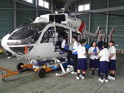 午後は、宮崎大学医学部を訪問しました。宮崎大学の有村先生が「健康・医療情報の捉え方」について講義をしてくださいました。現場の医師の話を聞くことで、将来医療関係の仕事に就きたいと考えている生徒にとって学ぶことの多い講義だったのではないでしょうか。その後、ドクターヘリとドクターカーについての説明をしていただき、実際にドクターヘリとドクターカーを見学しました。