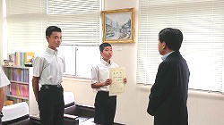 本日,校長室において“表彰報告会”があり,男子テニス部が出席しました。