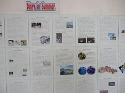 現在、校内の1年生・2年生・3年生のフロアの近くに、英語や海外にまつわる掲示物が掲示されています。1年生のフロア近くには、本年度の夏休み、都城市の海外派遣事業でオーストラリアでのホームステイに参加した人たちの報告が貼られています。2年生と3年生のフロア近くには、Diary in summerと題された、それぞれの学年の生徒たちの夏休みの日記が英文で記され貼られています。それぞれどんな体験をしたのか、何を学んだのか、どんな気持ちになったのか、読み応えたっぷりです。英語に限らずどの教科もですが、その教科の授業で学んだことから、視野を広げ、世界を広げ、新たな学びを得て、活かし楽しんでほしいと思います。英語のさまざまな掲示物も、その一助となるはずです。