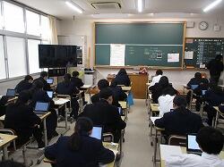 先日、2学期の期末テストが終わったばかりですが、1年生は12月に入ってすぐ、「みやざき学習状況調査」に挑みました。これまで学習してきた内容の定着や自分の学習状況等の調査で、県内の中学1年生が同時期に調査を受けています。以前は紙の問題用紙・解答用紙だったこの調査、今はタブレットを用いての入力の形をとっています。タブレットの使用はさまざまな面で拡大の一途をたどっていますが、テスト形式のものに用いられるのは現状ではまだ少なく、機材のトラブルや通信状況の不安定などないかやや緊張しながらの調査となりました。県全体の傾向を見ることができる調査ですが、個別の状況の把握にも多いに役立ちます。結果を待ちましょう。