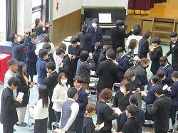 2月14日(水)、立志式の日。朝から1年生は先輩たちのために会場を準備しました。椅子を並べ長机を用意し白布を設え、少しずつ会場ができあがっていきます。一番末っ子の1年生ですが、何かできる仕事はないかと、大変積極的に動く姿があちらこちらに見られ、成長を感じました。手早く確実な仕事ぶりであっという間に会場ができあがりました。頼もしいです。